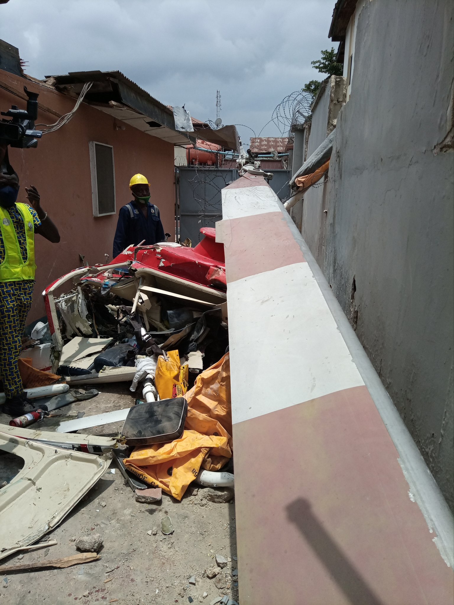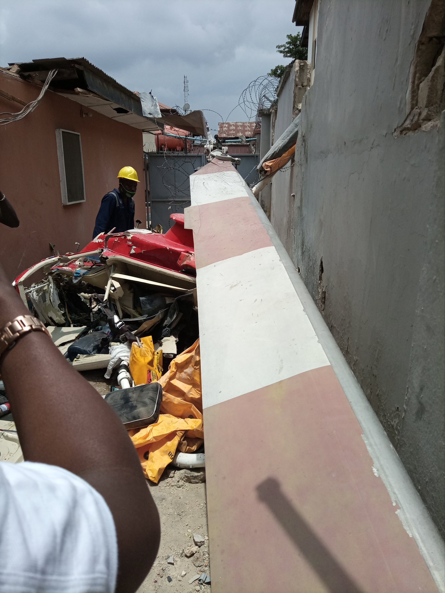 Tragedy struck at a busy Neighborhood in Lagos State after a Chopper crashed into a residential building at 16A Salvation Opebi Road, at Ikeja area of the State on Friday, 28th August.