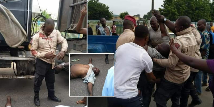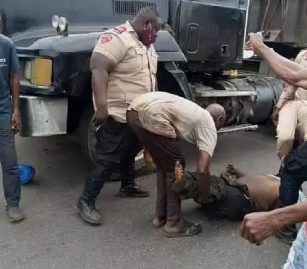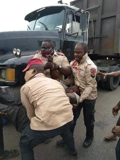 The officer survived the attack following the swift reaction of members of the FRSC response team, who rescued him from the claws of the mob, and rushed him to the to the Federal Medical Centre (FMC), Asaba, along with the truck driver.