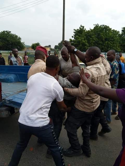 “He stop the vehicle immediately and trying to arrest the driver in a bid to impound the vechicle when the mob stormed the scene and beat the officer blue and black.