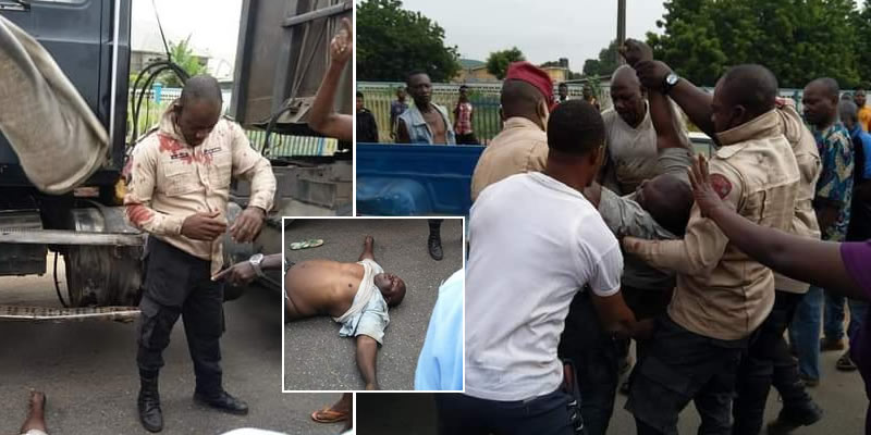 Narrating the incident that angered residents, eyewitnesses disclosed that the driver was gasping for breathe after he landed on the tarred road, and the situation attracted the mob who pounced on the officer.