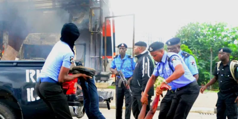 WITHIN NIGERIA learnt that the incident happened following reports of gunshots around Ahmadu Bello Way by Kano road. Policemen were dispersing the protesting outlawed group in the area when bullets hit their members, leaving two killed and several injured.