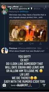 Twitter user – “if she What about Ceec that was Ebuka’s ex?” To which the former reality star replied saying;