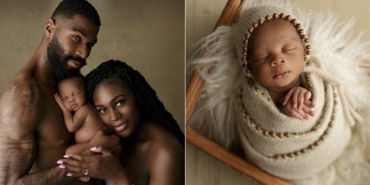 Nigerian-born British Athlete, BBNaija season 4 housemate and entrepreneur, Mike Edwards and his wife, Perri, shares new family photo, as they revealed their son’s face.