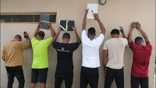 Two music producers and four others have been arrested by operatives of the Economic and Financial Crimes Commission (EFCC), Uyo zonal office over their alleged involvement in cybercrimes in Uyo, Akwa Ibom State.
