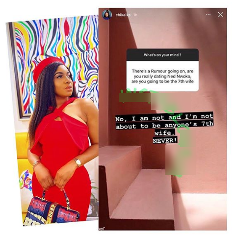 Well, Chika Ike has debunked the rumour and denied claims that she is planning to be Ned’s 7th wife.