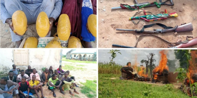 In the quest of military offensives by the Nigerian Army to rid the North West of armed banditry, troops on Operation Sahel Sanity have rescued 32 Kidnapped victims, arrested 26 bandits, their collaborators, arms and drugs suppliers while two bandits met their waterloo in gunfights.