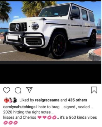 “I hate to brag .. signed , sealed .. 2020 hitting the right notes .. kisses and Cherios .. it’s a G63 kinda vibes.”
