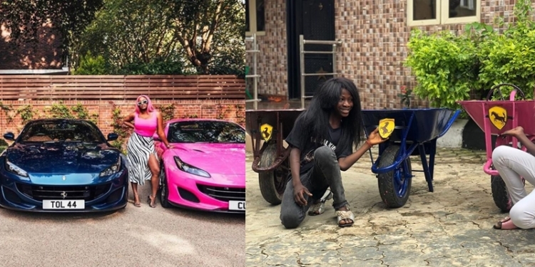 Popular Nigerian mimickers, Ikorodu Boiz have recreated photos of Femi Otedola’s daughters, Cuppy and Temi Otedola in their new Ferarri whips hours after it was release online.