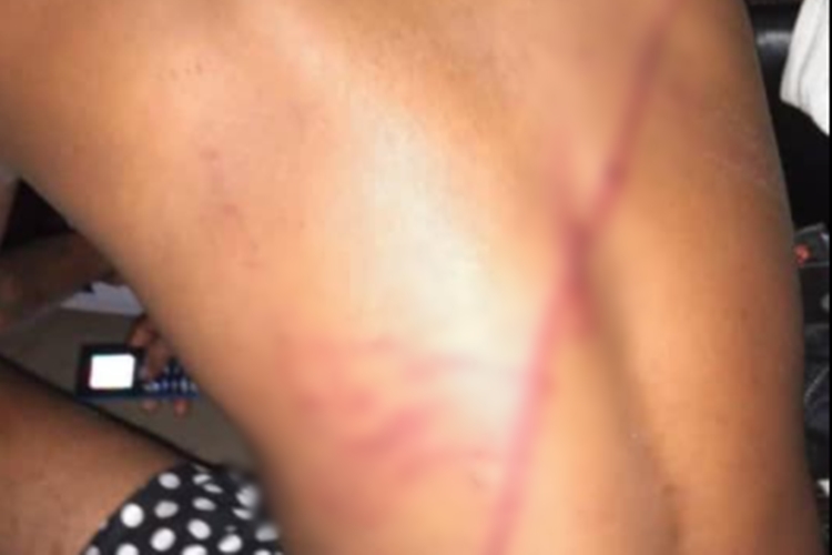 He shared a photo of his swollen back with a red whip mark and explained that he was flogged by soldiers in Benin, along Airport road.