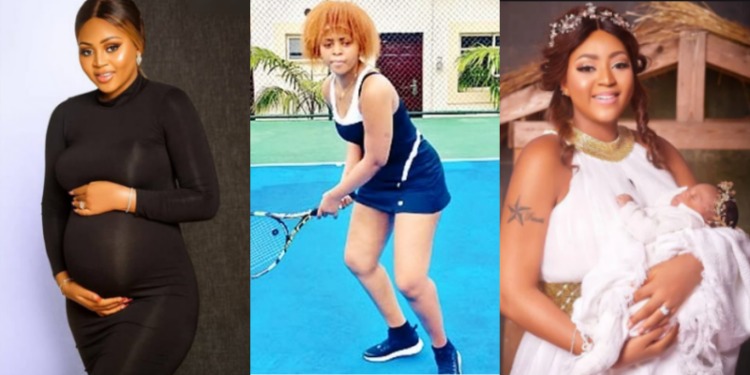 Nollywood actress turned billionaire’s 6th wife, Regina Daniels has resorted to playing lawn tennis, 3 months after she welcomed her first child.