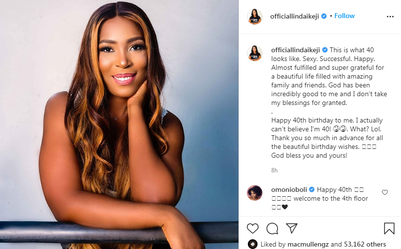 Few days after celebrating her son, Jayden who turned 2, exactly two days ago, billionaire blogger, Linda Ikeji is celebrating her 40th birthday today in style.