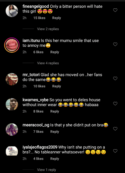 However, fans couldn’t help but notice that the actress wasn’t putting on a bra during her visit to the married man’s house and this has caused a stir on social media with many dragging her over supposed “insensitivity”.