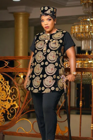 Nollywood siblings Empress Njamah and John Njamah were spotted twinning in “Isi Agwu” as they storm their brother, Aquila Njamah’s wedding to his woman, Anu Mohammed.