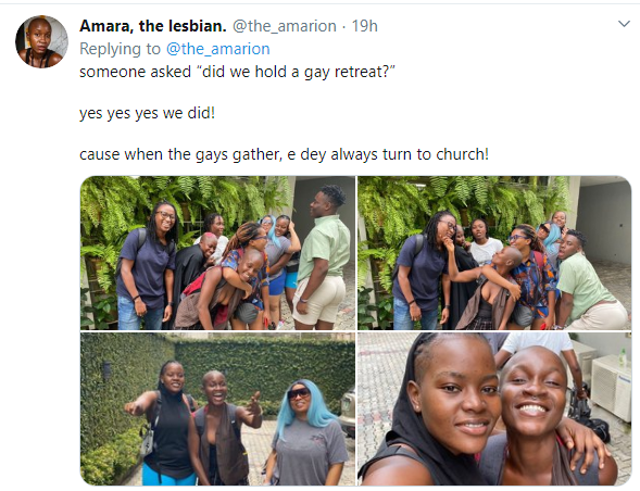 “someone asked “did we hold a gay retreat?” yes yes yes we did! cause when the gays gather, e dey always turn to church!”