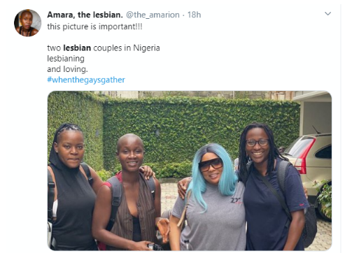 “this picture is important!!! two lesbian couples in Nigeria lesbianing and loving.”