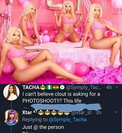 Tacha who is also referred to as the Titan queen, however, dropped a subtle comment indirectly at the celebrant, “I can’t believe clout is asking for a PHOTOSHOOT !!? This life.”