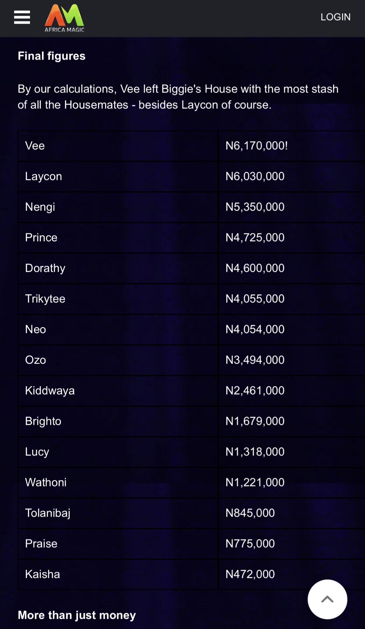 The list of the BBNaija lockdown season 5 housemates that became millionaires on the show has surfaced on the internet. In the list that is presently going viral on social media, it can be said that Laycon, Vee, Ozo, Nengi, Dorathy, Trikytee, Prince, Neo, Kiddwaya, Brighto, Lucy and Wathoni are the housemates that were lucky enough to have made millions of Naira on the reality show.