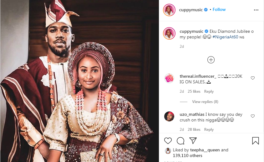 Popular Nigerian disc jockey and singer, Florence Ifeoluwa Otedola, professionally known as Cuppy, On 1st October, stirred the air with a photoshopped traditional wedding picture of herself and heavyweight boxing champion, Anthony Joshua.