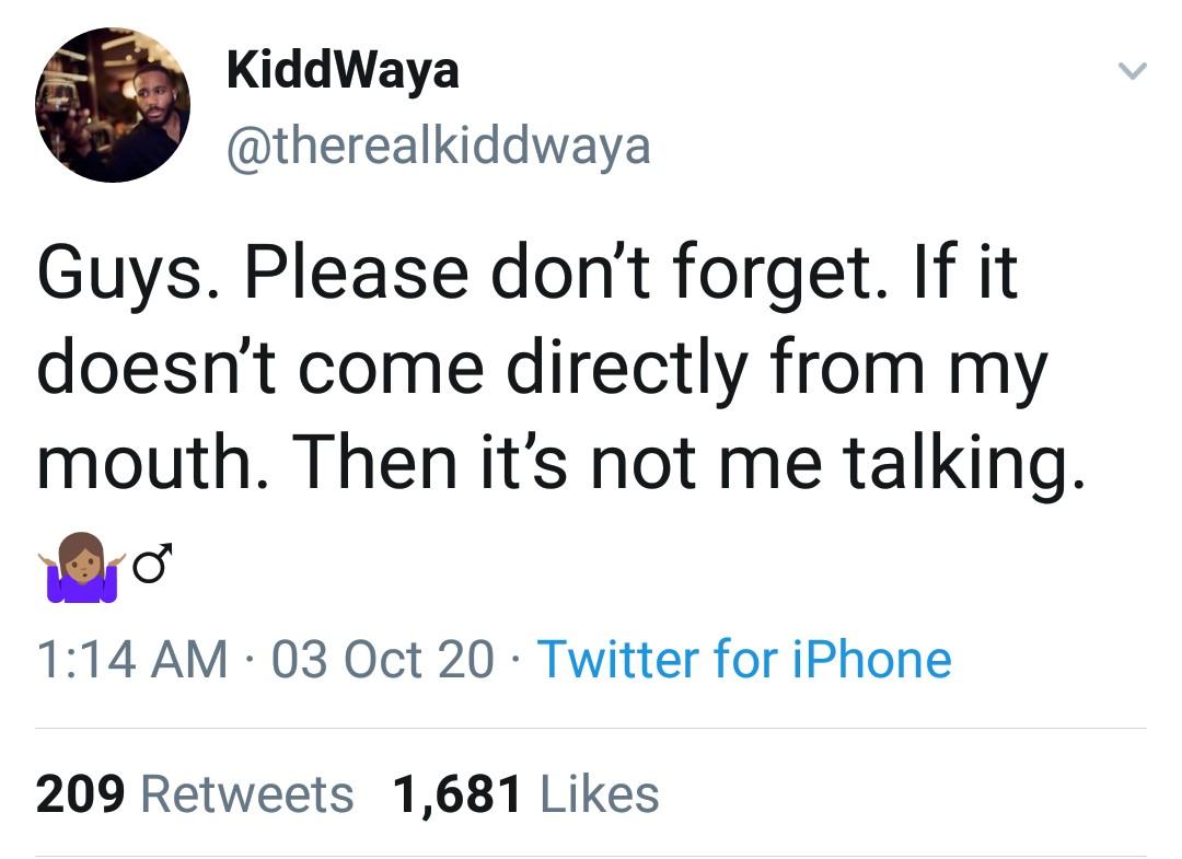 “Guys please don’t forget. If it doesn’t come directly from my mouth, then it’s not me talking”, he wrote.