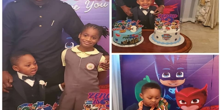 Late Ibidun Ajayi-Ighodalo‘s son, Zenan, is three today October 6. And his proud dad and clergyman, Pastor Ituah Ighodalo, organized a little celebration for him in their home with his sister, Keke, in attendance.