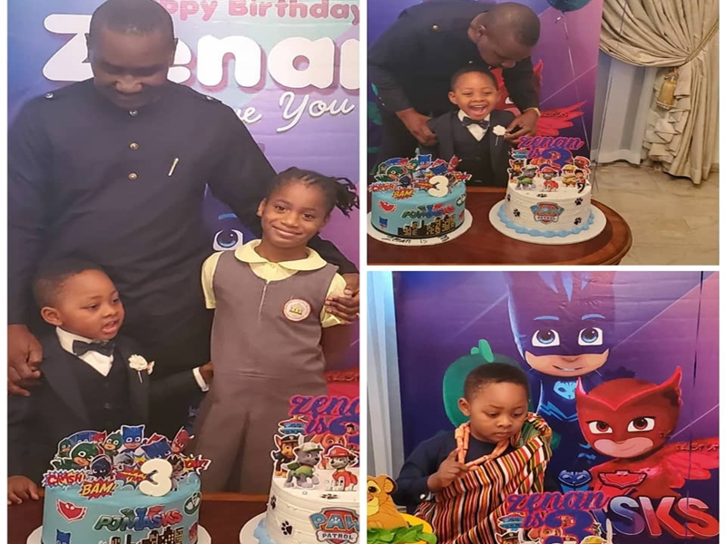 Late Ibidun Ajayi-Ighodalo‘s son, Zenan, is three today October 6. And his proud dad and clergyman, Pastor Ituah Ighodalo, organized a little celebration for him in their home with his sister, Keke, in attendance.