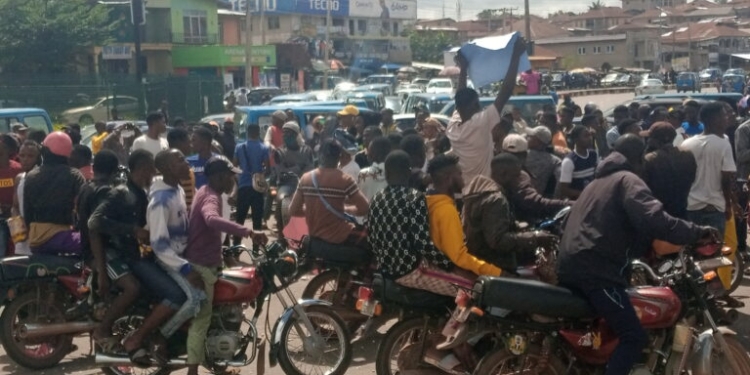 According to report, the demonstrators majorly young men and women moved to the State Government Secretariat, Abeere where vehicular movement was obstructed for more than thirty minutes after they have succeeded in grounding popular Olaiya junction for about 40 minutes.