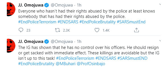 According to Omojuwa, he isn’t up to the task. This is coming amid the End SARs protest across Nigeria.