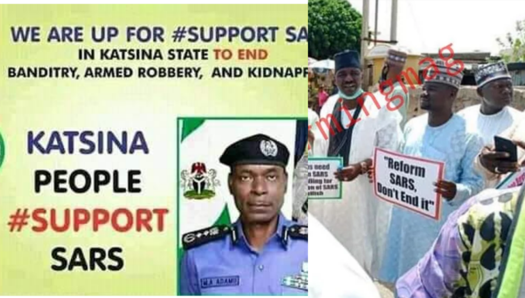 Sharing banners and posters that reads “Support SARs”, Katsina Youth came out in mass to show support for the unit