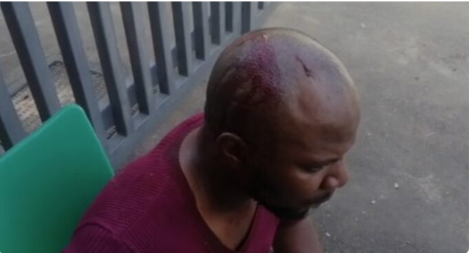 “This is the result of that brutalisation. I am about taking him to the hospital but then we just need to get this as a sign of evidence of what the police has done.”