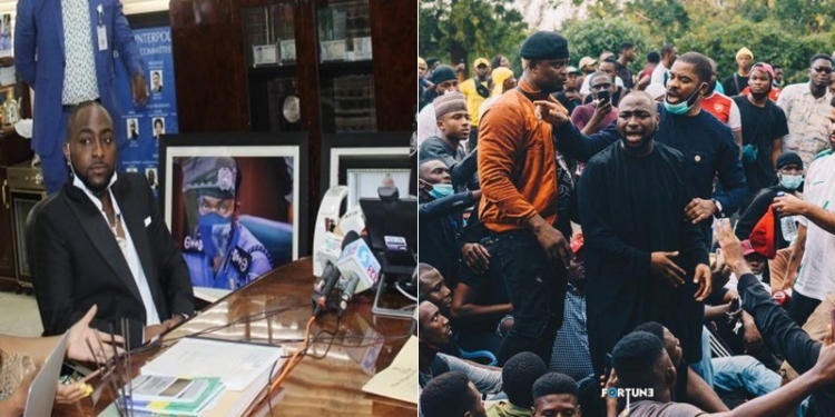 Davido is denying that he was part of the #ENDSARS protest. He said he was in Abuja because of his fans and he came things down. But he didn't come to join the protest 😭#SARSMUSTEND pic.twitter.com/jgPqBHBlbe— Big Based Chad (@BigBasedChad) October 12, 2020