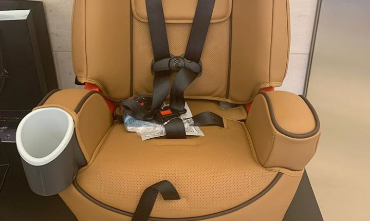 The car seat is customized with Kulture’s name.