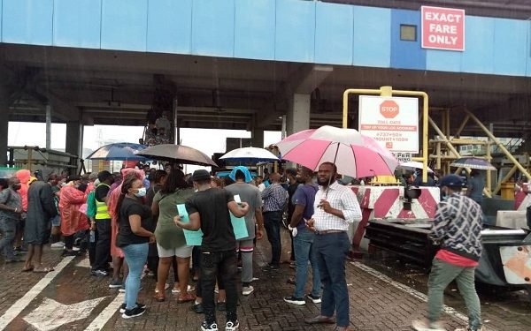 WITHIN NIGERIA gathered that the protesters stormed the Lekki Toll Gate section of the Lekki-Epe Expressway despite heavy downpours.