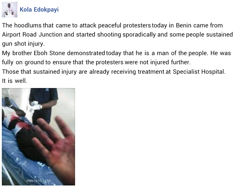 “It is disheartening that anyone would attack a peaceful assembly of young people who are expressing genuine concerns over police brutality and intimidation in their own country. Thorough investigation would be conducted immediately to fish out the culprits of the attack on peaceful # EndSARS protesters in Benin City, and we would do all possible within the law to ensure those culpable are brought to justice,”