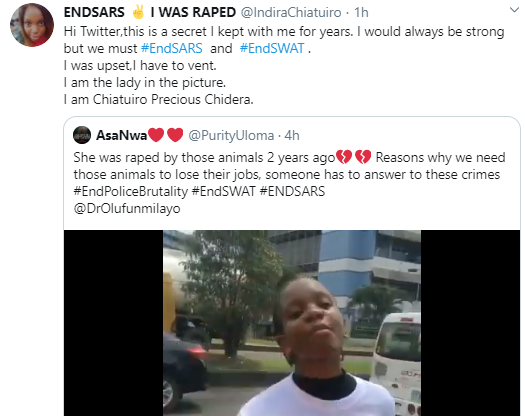A young schoolgirl who was reportedly assaulted by SARS official said she’s joining the call to end SARS and its replacement SWAT because she’s been a victim and won’t wait for her children to go what she went through.