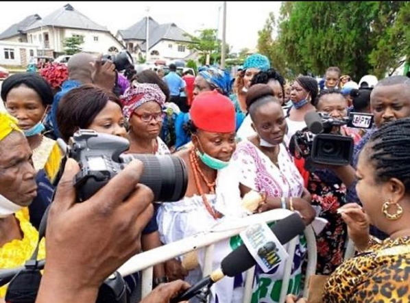 The women of Idumuje-Ugboko community under Aniocha North Local Government Area of Delta State on Wednesday protested against the Nigerian billionaire and former federal lawmaker, accusing him of tormenting indigenes and incarcerating their husbands, relatives and sons.