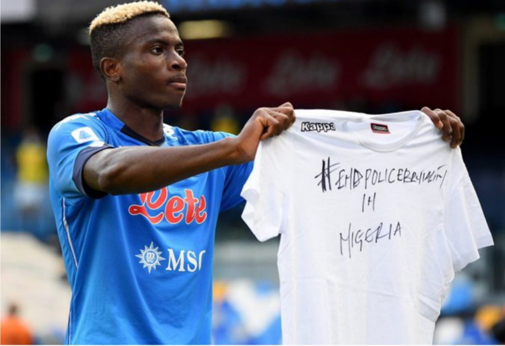 After bagging his goal, he held up a shirt in support of the campaign against Police Brutality, #EndSARS in Nigeria.