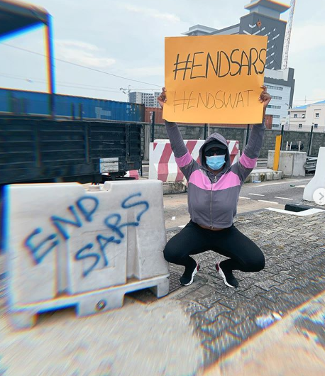 DJ Cuppy, the daughter to billionaire business man, Femi Otedola has finally joined the End Sars protest.
