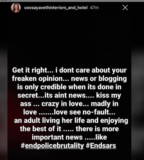 Ehi took took to her Instagram story to confirm the report and slam bloggers..