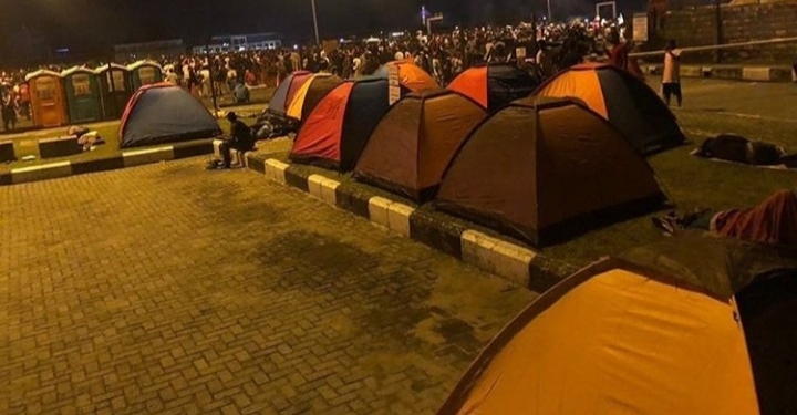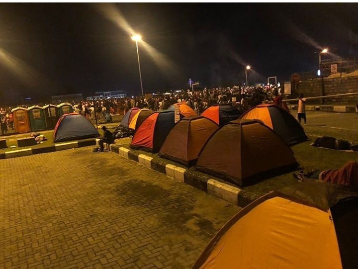 WITHIN NIGERIA learnt that some #EndSARS protesters pass the night at the protest grounds at the Lekki toll gate and outside the Lagos State House of Assembly, Alausa in Ikeja.