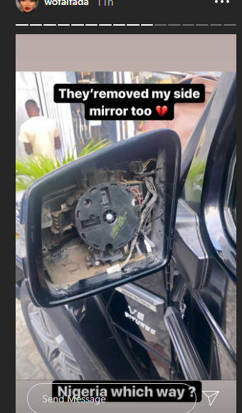 Just Afang CEO, Wofai took to her Instagram story to share the photo of how the thieves left her car.