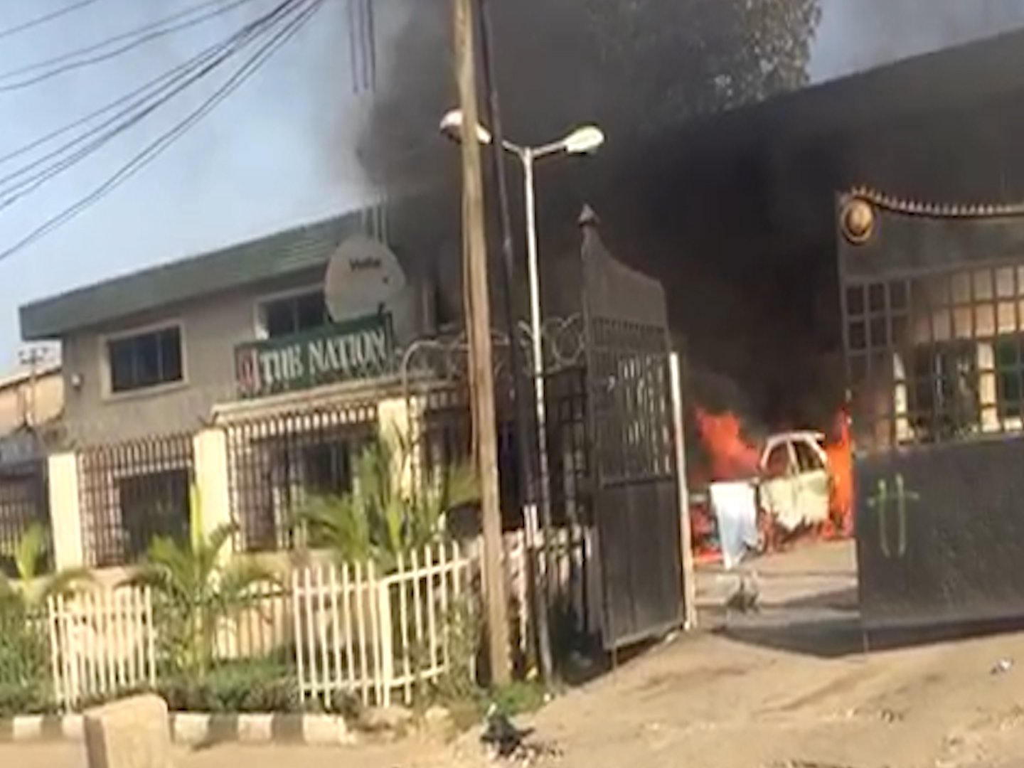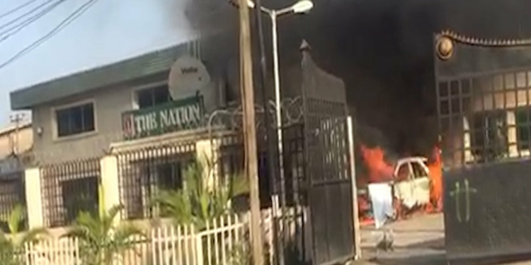 Hours after the brutal killing of peaceful #EndSARS protesters at Lekki Toll gate, Lagos, by security operatives, what seemed peaceful at first has completely turned to chaos as some hoodlums have set the office of The Nation Newspaper on fire.