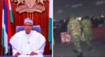 The Lemonade artist sizzled in some skintight neon activewear leggings with a matching bustier top and clear vinyl raincoat, finished with yellow and green trainers.