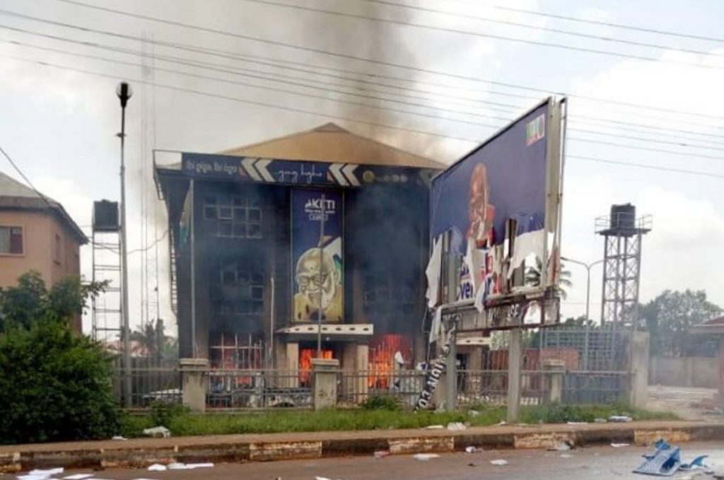 Also, the campaign office of Akeredolu located along Roadblock /Ilesha road has been set on fire by some hoodlums.