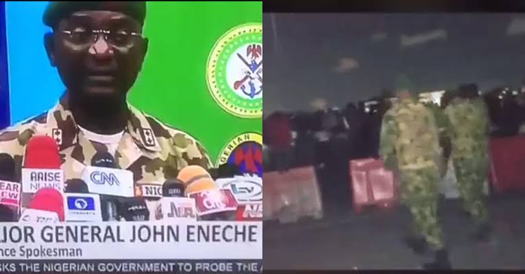 While addressing a press conference on the Lekki Toll Gate shooting which many said was perpetrated by soldiers, Major Gen. John Eneche, stated that the viral videos were doctored.