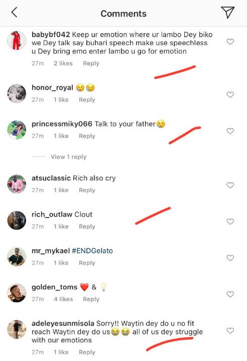 @nifemieyy wrote “This girl na mumu,you dey cry,you carry phone snap urself”