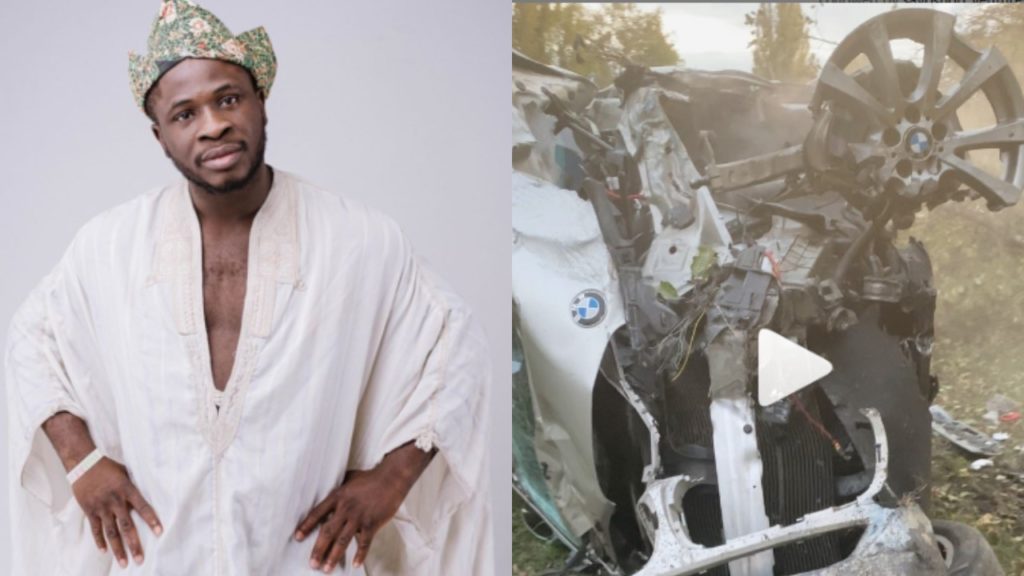 According to the 28 year old in the video he shared, he got involved in a ghastly motor car accident and he managed to come out alive from the totaled car.