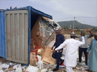 Before the suspected criminals were arrested by the Nigerian Police in the state, they reportedly vandalized a warehouse in Lokoja and looted the medical equipment with his car.