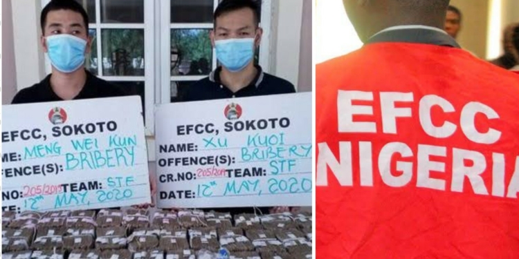 The Economic and Financial Crimes Commission (EFCC), Sokoto Zonal Office, on Tuesday, re-arraigned two Chinese nationals, Meng Kun and Xu Koi, accused of offering a N100 million as a bribe to its zonal head, Abdullahi Lawal.