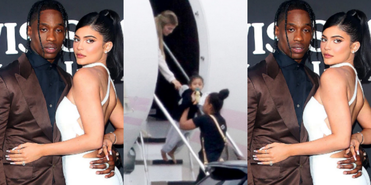 Popular self made billionaire, Kylie Jenner and her baby daddy, Travis Scott were spotted stepping off her luxurious 72.8 million dollar private jet on Sunday.