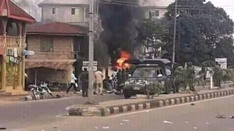 According to the commissioner, the hoodlums regrouped in their large numbers on Monday and reinvaded the Central Police Station, Abakaliki, for the second time, setting the station ablaze including police patrol vehicles.